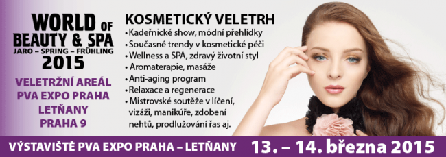 Rádi bychom Vás pozvali na mezinárodní veletrh kosmetiky, krásy a zdravého životního stylu WORLD OF BEAUTY & SPA v předjarním týdnu dne 13. a 14. března 2015 v moderním prostředí letňanského výstaviště PVA EXPO PRAHA.