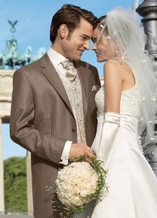 Na požádání vám předvedeme německé svatební obleky se speciální cestovní nežehlivou a nemačkavou úpravou.