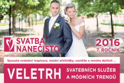 Zveme na již na 7. ročník přehlídky svatebních a společenských služeb SVATBA NANEČISTO A MÓDA 2016. Velkou změnou je počet veletrhů v příštím roce. Nebude pouze jeden a to v Olomouci, ale budou hned 3 – 16.-17.1.2015 Olomouc - Clarion Congress Hotel, 15.10.2016 Přerov - Hotel Fit a nově také v roce 2016 ve Zlíně.